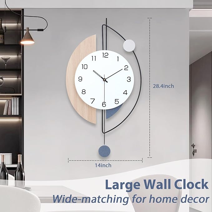 Wall Clock,Large Decorative Wall Clocks with Pendulum,Battery Operated Silent Quality Quartz Wall Clock for Living Room,Kitchen,Home,Bathroom,Bedroom Wall Decor,14x28.4inch