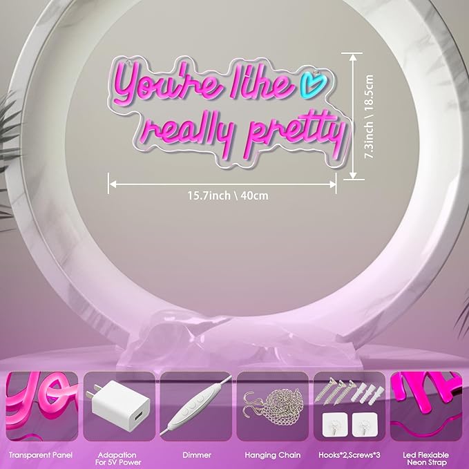 - 【CHARMING DECORATION& EXCELLENT GIFTS】: This you're like really pretty room neon light sign is perfect for girls' rooms,parties, kids' rooms, game wall decorations, and provides a cool and happy atmosphere for girls! Not only that, you're like really pretty room decor is also the perfect gift for family, friends, girls,boys, party,game lovers, etc.