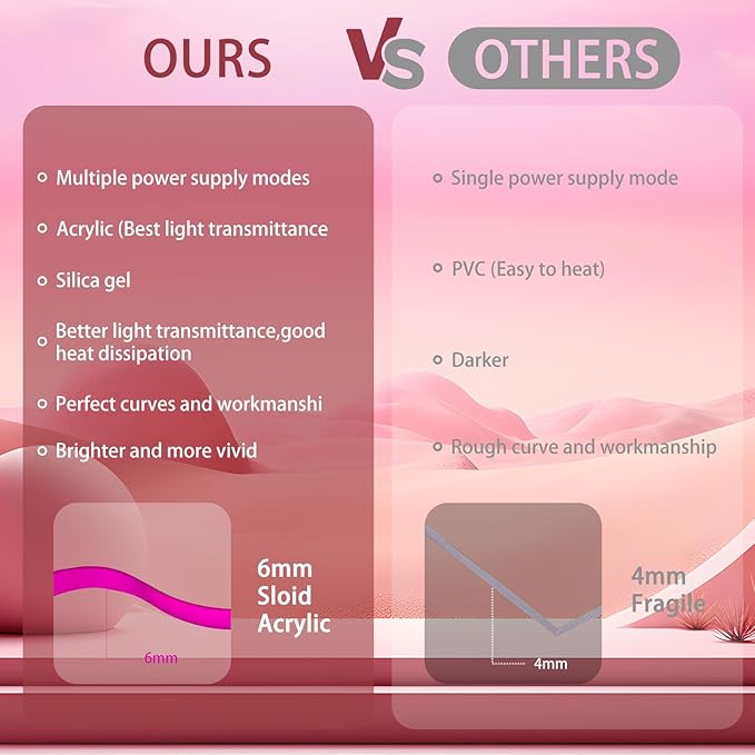 - 【SAFETY AND NO RISKS】:Our neon sign is made of high-quality acrylic backboard and LED strip lights, Quiet and noise-free, the LED neon tubes do not heat up and are safe to touch. Powered by a USB cord (5.9ft/1.8m) and 5V low voltage. No broken glass, no harmful materials, even if it is placed in the bedroom, it can ensure your safety. Don't worry!