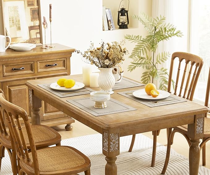 - Recommend Highly: The natural color of our placemats fit with most table colors. When decorating your table, still coordinating with your rug and other room decor. These placemats would make an amazing gift for New Year's Day, Christmas Day, Valentine's Day, Easter Sunday, All Saints' Day, Thanksgiving Day and so on.