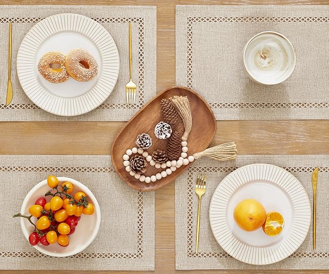 - Unique Design: Rustic geometric hollow design gives an unique charm of the placemat. Two-tier design linen style classic place mats can protect your dinner table from scratches and stains and improve your dining experience.