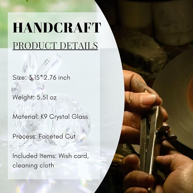 - Translucent Crystal Rabbit: The bunny statue is made of high quality K9 raw material, no bubbles and impurities. The figurine is hand cut and polished to create facets that reflect dazzling light.