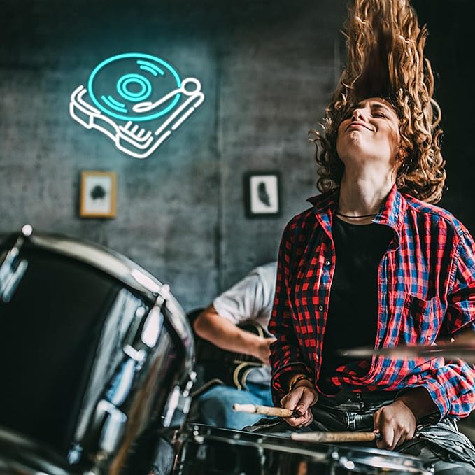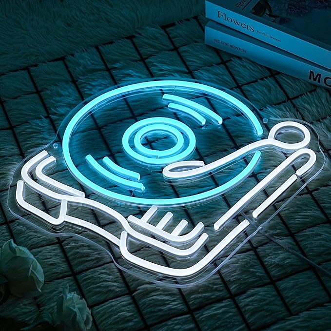 - 【Innovative Design】:The record player neon signs is composed of a blue record and a white retro player. The unique design allows led neon light to serve as a music room decoration. Gentle lighting is more charming. It can be placed in a bar or music studio.