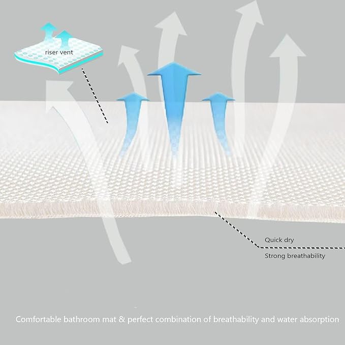 - 【Safe Non-Slip Design】The Lisenced non-skid air mesh backing is durable for long lasting use compared with other TPR materials, which ensures that the mat stays perfectly in place, helping to prevent you from falling on slippery bathroom floors. The backing can be recycled to save energy effectively which is strong, sticky, and durable, without the harsh chemicals of PVC.