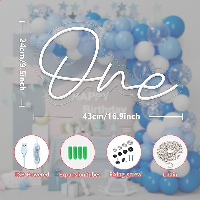 One Led Neon sign,1st Birthday Neon Light with USB Interefece,One Led Light for Birthday Party,Gifts,Baby Decor,Wedding