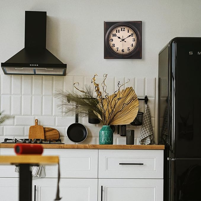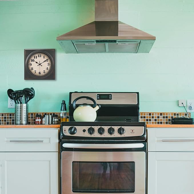- Easy to Read: 12 inch vintage square wall clock. Large black bold numbers against light yellow brown dial creates easy viewing.