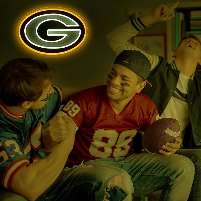 - 【Top Quality Environmental Protection Safe Material】-- YUNYEENEEN Football team logo neon sign is made of flexible LED PVC silicone lamp strip but not the traditional glass lamp strip, with the acrylic back plate, hand-crafted, lightweight and durable! Over 92% light transmission, bright but not dazzling, soft and thick with strong heat-resistance, avoiding the risk of glass lamp strip cracking due to overheating. It would be the most eye-catching party decoration.
