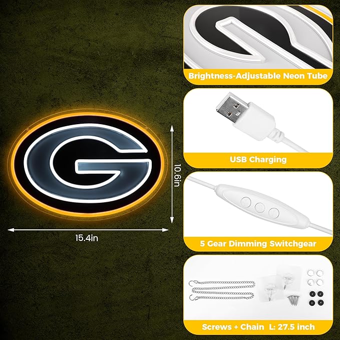 - 【Perfect Size & USB Power】-- Football team logo neon sign size 40cm × 26.5cm/15.8 × 10.5 in. It is not too big or not too small, suitable for hanging in many places. Supported by high transparent acrylic sheet, it is brighter, three-dimensional and fashionable than other ordinary neon signs. Powered by a USB plug, the 59-inch USB power cord connection makes the Football team logo neon sign sturdy and durable. it can also be connected to a charging bank, computer and adapter.