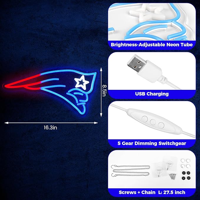 - 【Top Quality Environmental Protection Safe Material】-- YUNYEENEEN Football team logo neon sign is made of flexible LED PVC silicone lamp strip but not the traditional glass lamp strip, with the acrylic back plate, hand-crafted, lightweight and durable! Over 92% light transmission, bright but not dazzling, soft and thick with strong heat-resistance, avoiding the risk of glass lamp strip cracking due to overheating. It would be the most eye-catching party decoration.