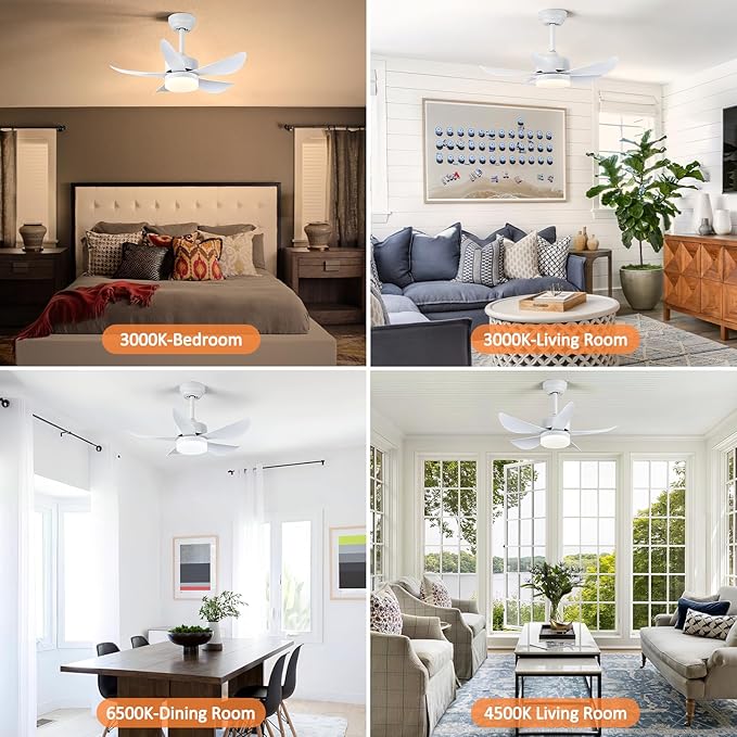 - Modern Ceiling Fan with Light:Sleek and clean look 32" small ceiling fan light suitable for bedroom kitchen kids room home office covered outdoor patio (Not to be exposed directly to rain)