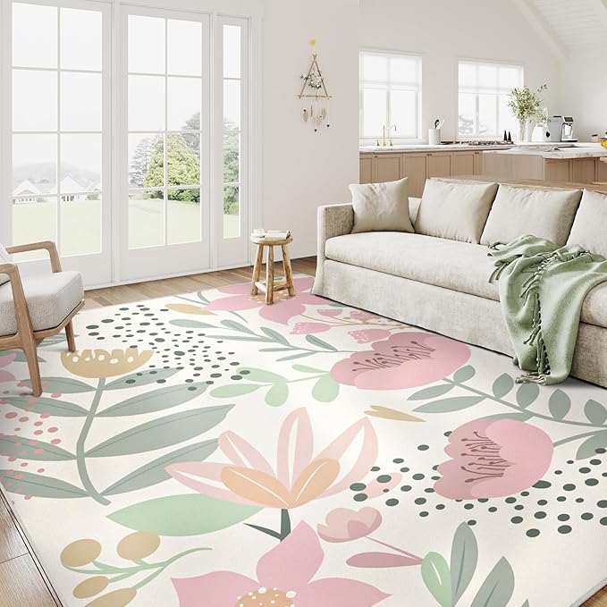 - Classic Modern Style: PureCozy area rug has a trendy faded style and a unique floral pattern, modern design blend perfectly with your home, suitable for the living room, bedroom, dining room, laundry room, entryway, kids' room, playroom, kitchen and office