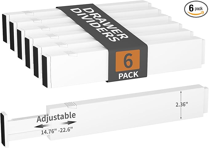 6 Pack Drawer Dividers, 2.36" High, 14.76-22.36" Adjustable Drawer Divider for Clothes