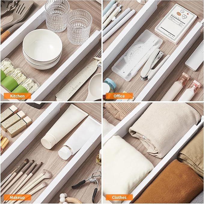 - Expandable drawer organizer are suitable for a variety of scenarios in the home, kitchen, office, bookcase and more.
