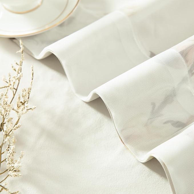 VOGOL Beige Blackout Curtains with Tulle Overlay, 2 Layered Flower Print Cloth Curtain Privacy Drapes for Living Room, Grommet Window Treatment for Bathroom, 52 x 96, 2 Panels