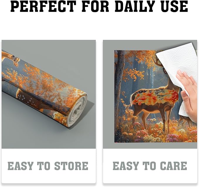 Giwawa Fall Deer Placemats Set of 4, 12"x18" Autumn Forest Trees Moose Linen Place Mat, Woodland Wildlife Washable Non-Slip Table Mats for Kitchen Dining Party Picnic Indoor Outdoor Decor