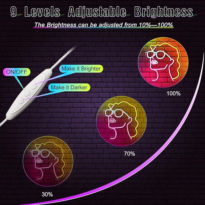 - [Safety and Durability]: Compared with the old-fashioned glass neon sign, the neon tube does not generate heat and can be safely touched. This eco-friendly LED light sign is powered by a 5V power adapter (1.5 meters) and is cleverly designed for long time use.