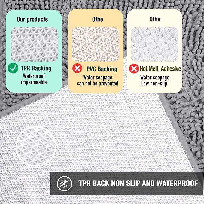 Bathroom Rugs Mat 36x24 Non Slip Chenille Bath Mats Bath Rugs for Bathroom Shower Gray
