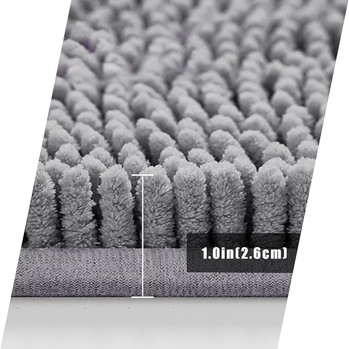 Bathroom Rugs Mat 47x24 Non Slip Chenille Bath Mats Bath Rugs for Bathroom Shower Gray
