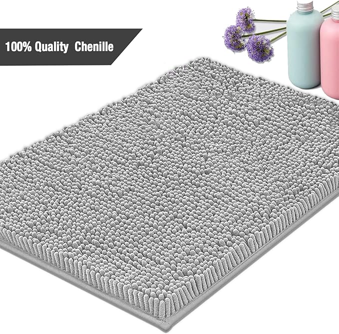 - SOFT CHENILLE: This bathroom rug is made of high-quality chenille.The chenille is viry soft and it's easy to clean. Chenille velvet length 1.4inch. Its color is light gray, Suitable for most home decoration styles.Colors may show color differences in different environments. The first picture has been color-calibrated with a Mac computer and is the closest to the original color.