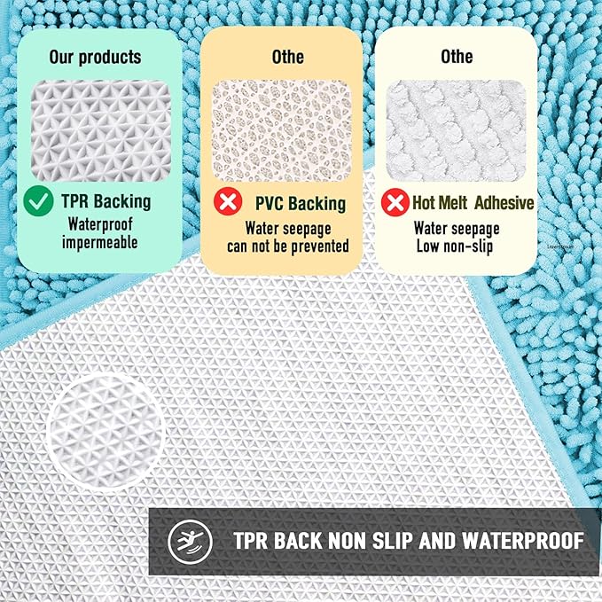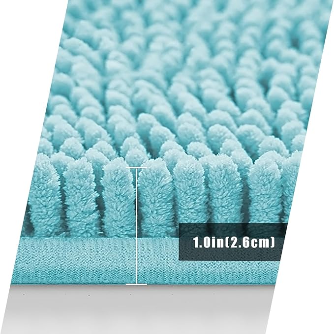 - SOFT CHENILLE: This bathroom rug is made of high-quality chenille.The chenille is viry soft and it's easy to clean. Chenille velvet length 1.2inch. Its color is as clear as the water in a swimming pool. Colors may show color differences in different environments. The first picture has been color-calibrated with a Mac computer and is the closest to the original color.