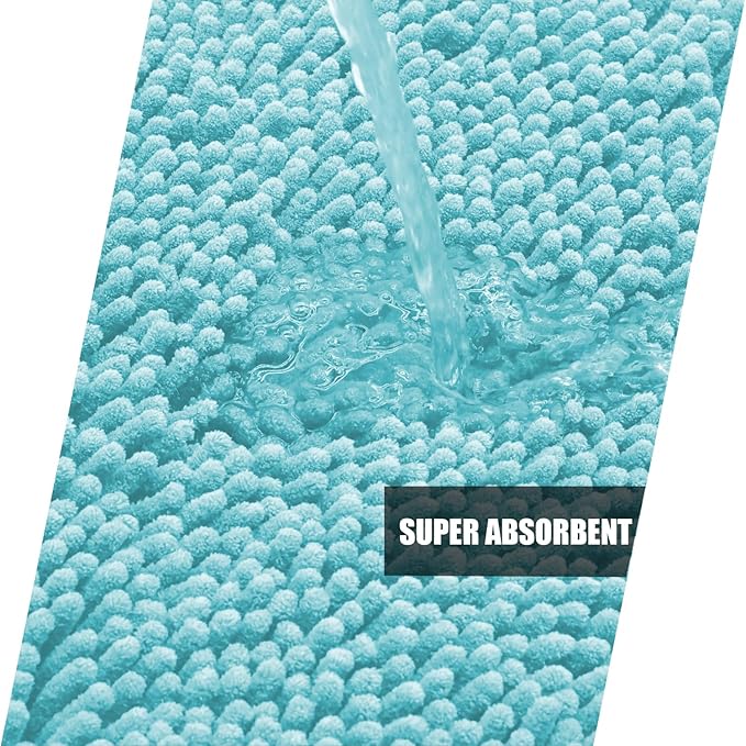 Bathroom Rugs Mat 36x24 Non Slip Chenille Bath Mats Bath Rugs for Bathroom Shower Aqua Blue
