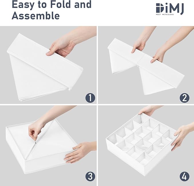 DIMJ Sock Organizer Drawer Organizer - Dresser Underwear Drawer Organizer for Storing Socks, Handkerchiefs, Ties, Belts, White