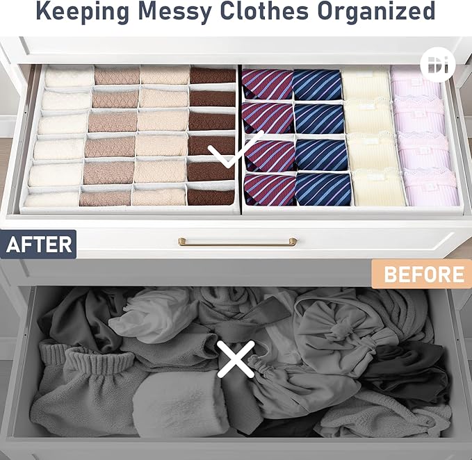 - 【Guarantee for Sock Oganizers】 Our foldable sock drawer organizers are made under strict quality control for the superior quality and your satisfaction. 24H reliable customer service for you. Give it a try! It's NO RISK!
