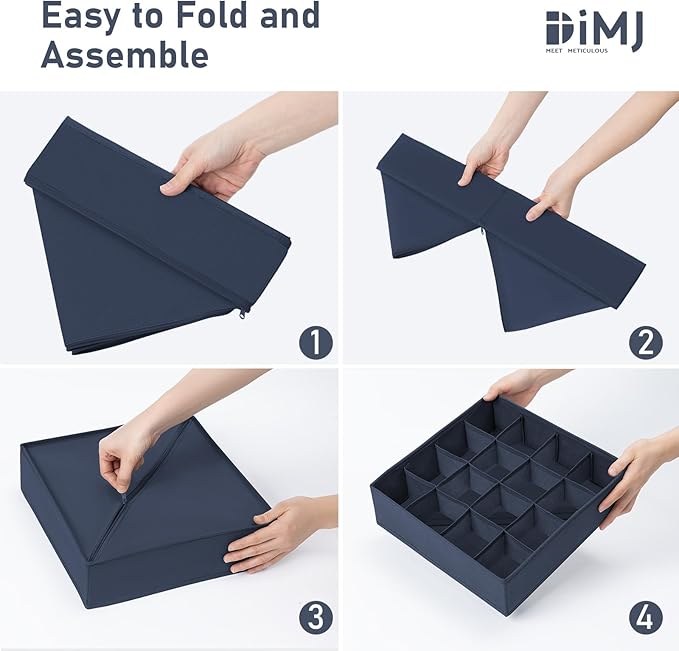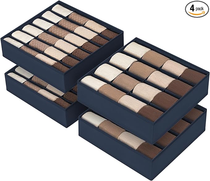 DIMJ Sock Organizer Drawer Organizer - Closet Organization and Storage, Underwear Drawer Organizer for Storing Socks, Handkerchiefs, Ties, Belts, Navy Blue