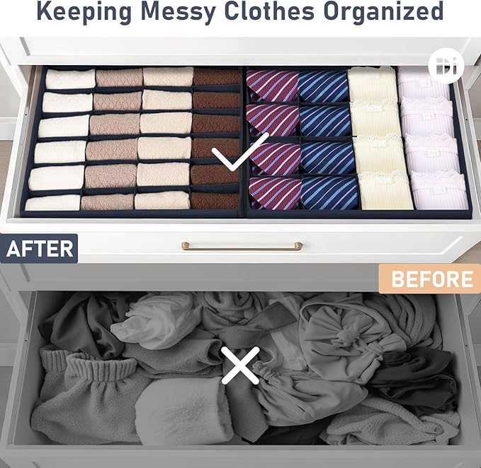 - 【Guarantee for Sock Oganizers】 Our foldable sock drawer organizers are made under strict quality control for the superior quality and your satisfaction. 24H reliable customer service for you. Give it a try! It's NO RISK!