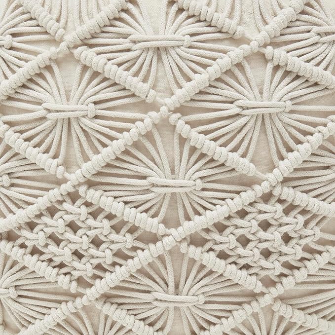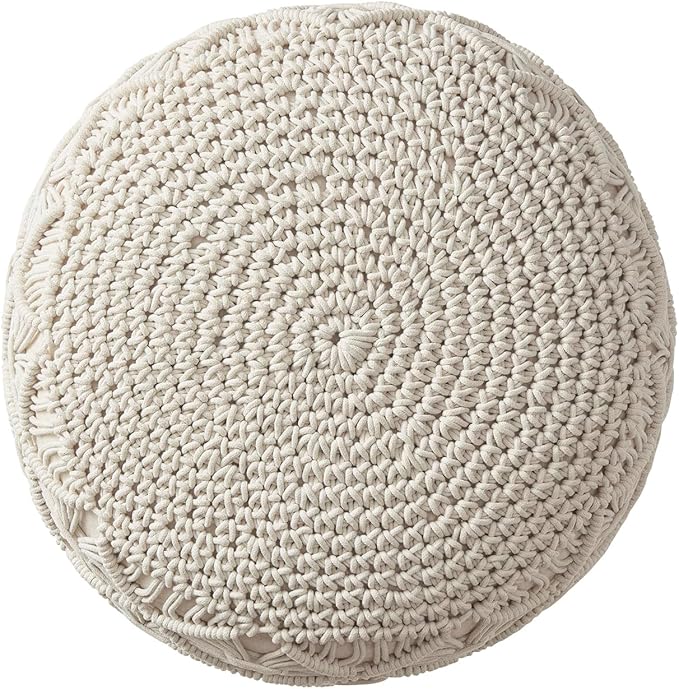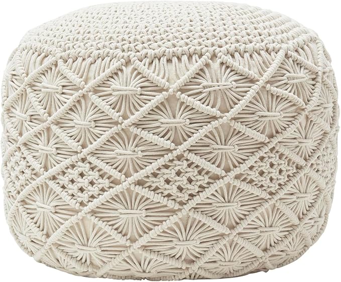 Ornavo Home Pouf Ottoman Foot Rest - 100% Cotton Pouffe - Hand Knitted Macrame Braid - Boho Round Stuffed Ottoman for Living Room, Bedroom - Natural