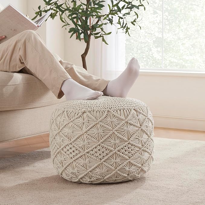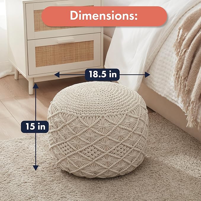 - 100% COTTON CORD: Enjoy the exceptional softness and lasting durability of our pouffe, meticulously crafted from 100% cotton. The material offers a comfortable place to rest your feet or sit, making it a perfect blend of style and practicality to enhance your daily comfort.