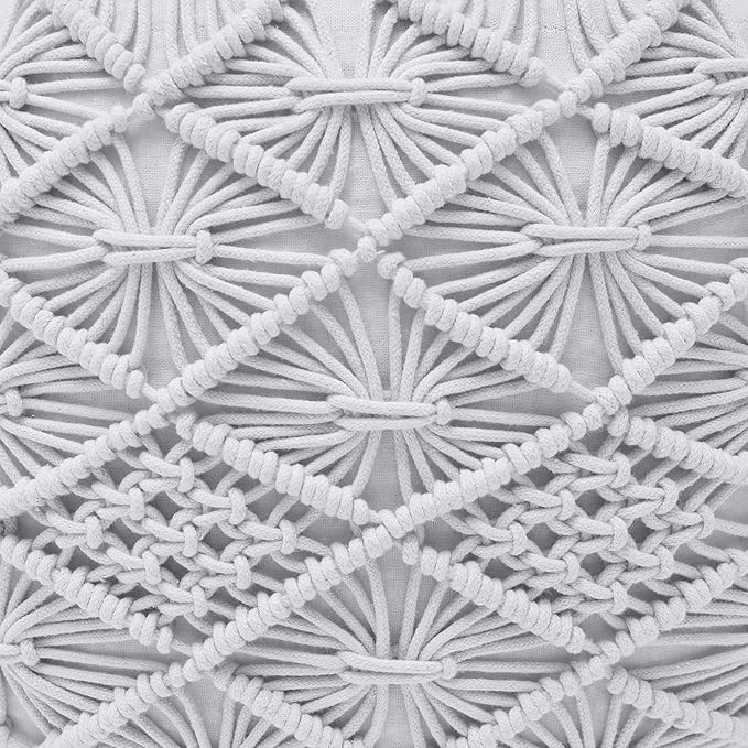 Ornavo Home Pouf Ottoman Foot Rest - 100% Cotton Pouffe - Hand Knitted Macrame Braid - Boho Round Stuffed Ottoman for Living Room, Bedroom - White