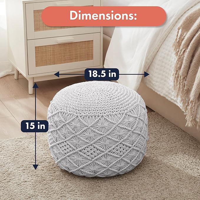 - 100% COTTON CORD: Enjoy the exceptional softness and lasting durability of our pouffe, meticulously crafted from 100% cotton. The material offers a comfortable place to rest your feet or sit, making it a perfect blend of style and practicality to enhance your daily comfort.