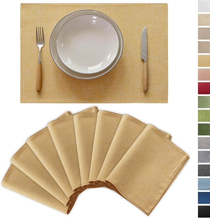 Demetex Yellow Placemats Set of 8 Linen Fabric Placemat Heat Resistant Washable Place Mats for Kitchen Party Dinner, 13x19 inch, Yellow