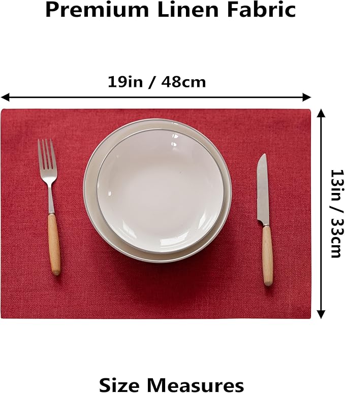 Demetex Red Christmas Place Mats Set of 8 Fade Resistant Linen Placemats Modern Decorative Table Placemat for Holiday Wedding Birthday, 13x19 inch, Wine Red