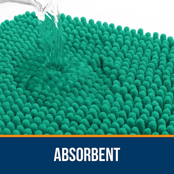 OLANLY Bathroom Rugs 30x20, Extra Soft Absorbent Chenille Bath Rugs, Rubber Backing Quick Dry, Machine Washable Bath Mats for Bathroom Floor, Tub and Shower, Home Decor Accessories, Emerald