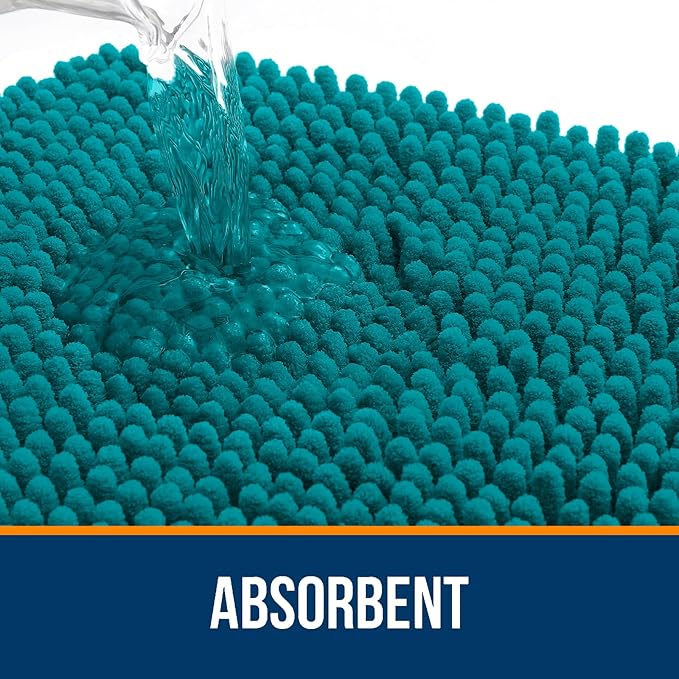 OLANLY Bathroom Rugs 24x16, Extra Soft Absorbent Chenille Bath Rugs, Rubber Backing Quick Dry, Machine Washable Bath Mats for Bathroom Floor, Tub and Shower, Home Decor Accessories, Deep Lake