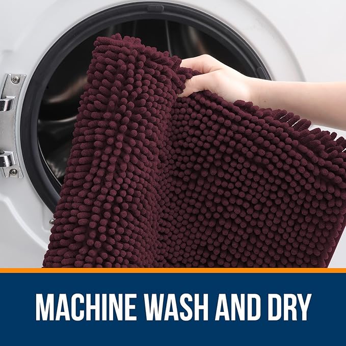 OLANLY Bathroom Rugs 30x20, Extra Soft Absorbent Chenille Bath Rugs, Rubber Backing Quick Dry, Machine Washable Bath Mats for Bathroom Floor, Tub and Shower, Home Decor Accessories, Black Cherry