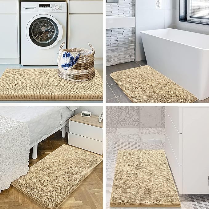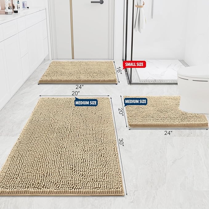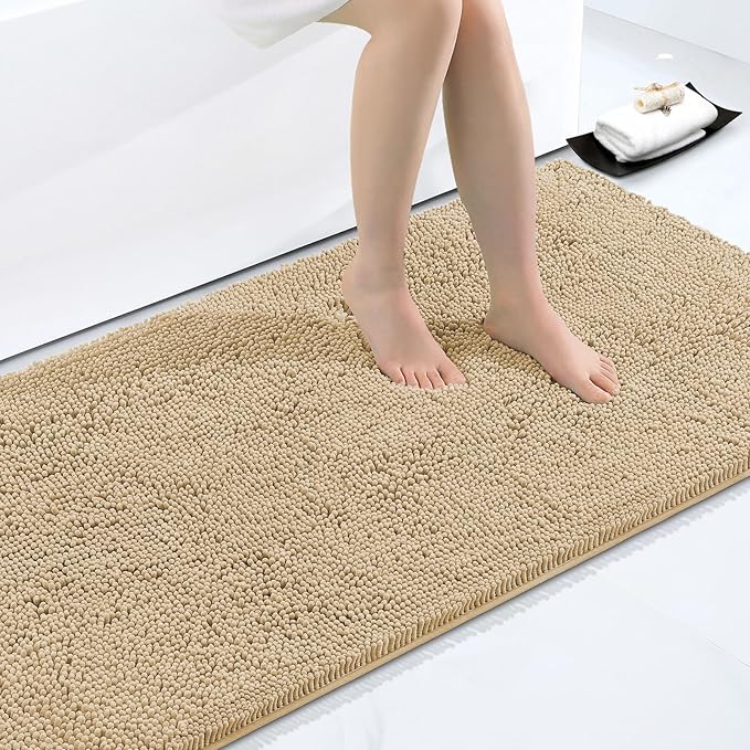 Smiry Luxury Chenille Bathroom Rugs 40x24, Extra Soft and Absorbent Shaggy Bath Mat, Machine Washable, Non-Slip Plush Carpet Runner for Tub, Shower, and Floor, Home Decor Accessories, Beige