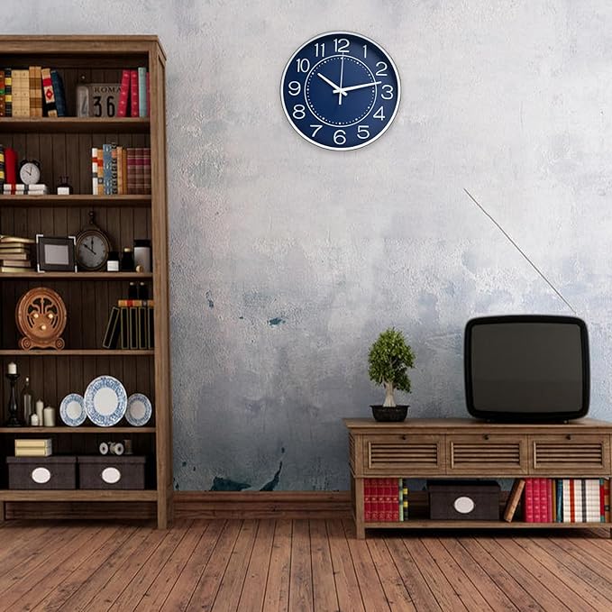 HZDHCLH 12inch Wall Clocks Battery Operated,Quartz Movement,Silent Non Ticking Modern Wall Clock for Living Room Bedroom Kitchen Office School Classroom Decor Navy Blue