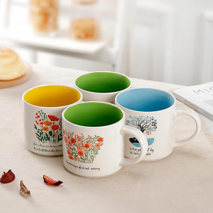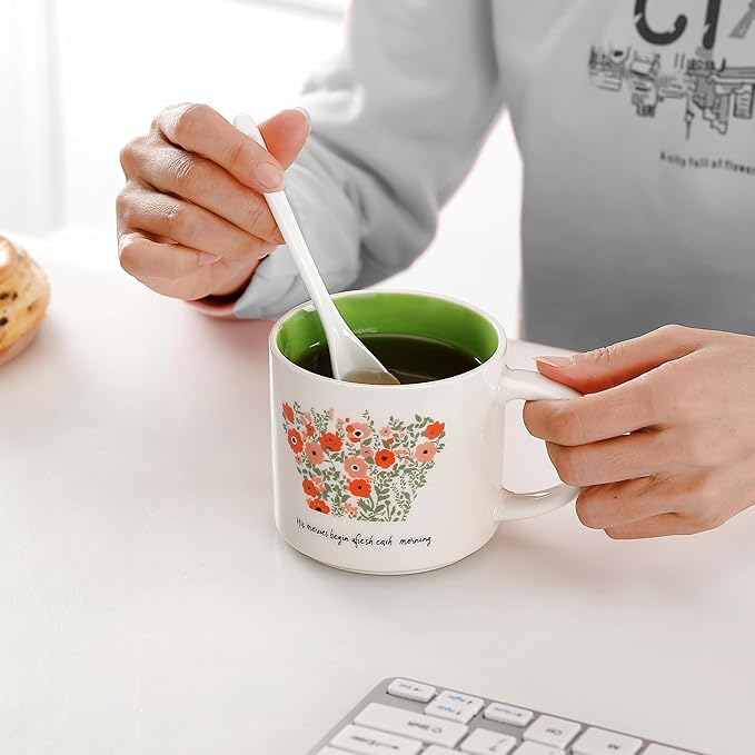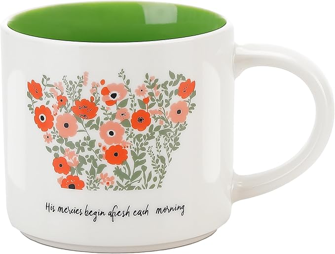 Blooming Floral Ceramic Mug 15 OZ (450ml) - His Mercies Begin Afresh Each Morning - Faith Inspired Coffee Cup with Botanical Design - Microwave & Dishwasher Safe