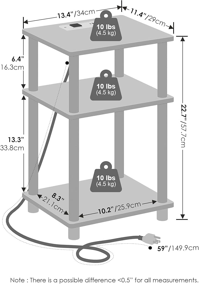 - Compact 3-level nightstand ideal for limited spaces. Rounded corner reduces the risk of injury