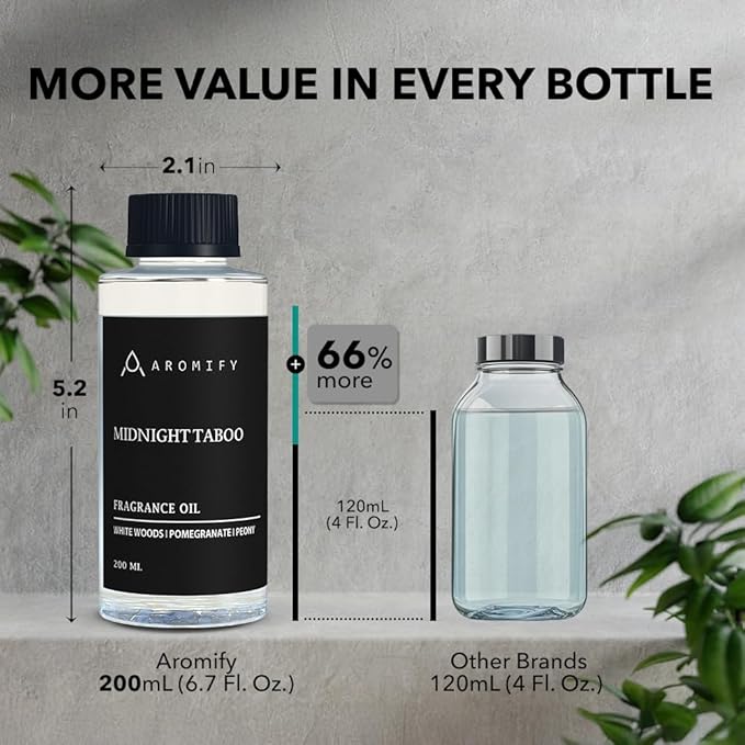 - DESIGNED FOR DIFFUSERS: Aromify Midnight Taboo Fragrance Oil is crafted specifically as a fragrance oil for diffuser use. Whether you prefer ultrasonic, ceramic, or reed diffusers, this oil for diffuser releases a beautiful aroma, transforming your surroundings and enhancing your experience at home, the spa, or work.