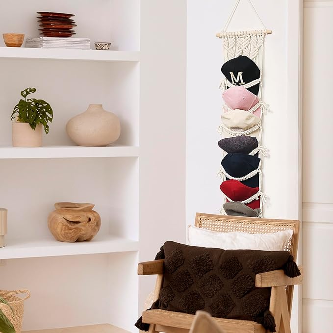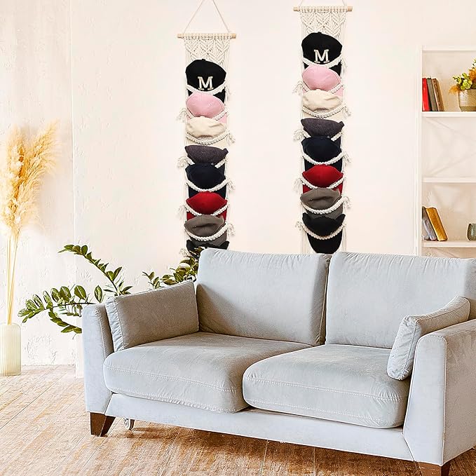 Boho Ball Cap Hanger-2 Pack-Boho Macrame Cap Holder Wall Hat Organizer for Baseball Cap Holder Over Door, Hat Rack for Wall Cap Rack Disaplay Bearoom Decorations