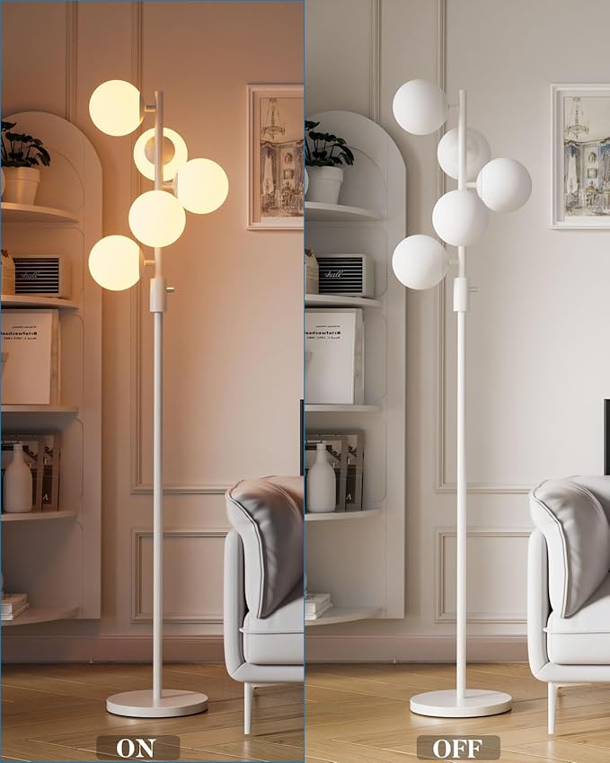 - Unique & Exquisite Design: The combination of the white frosted PC lampshades and the light pole with a brass luster makes this mid century modern floor lamp look retro and artistic. Minimalist design saves space and perfectly matches any home style.