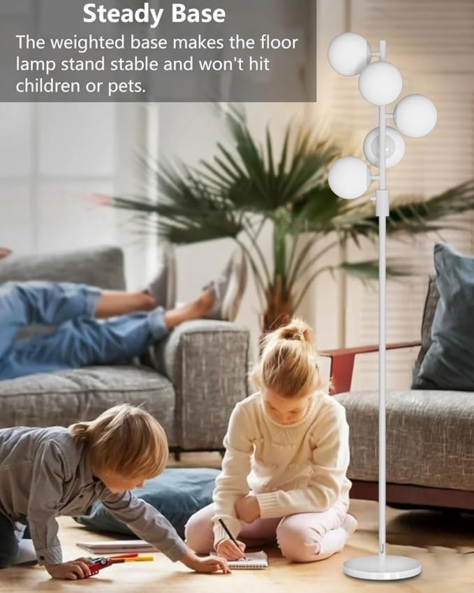 - Durable & Stable: Our globe floor lamp is 64IN tall and made of high-quality metal. The pole is straight and never bent and the weighted base is stable to prevent tipping, which is very safe for children, the elderly and pets.