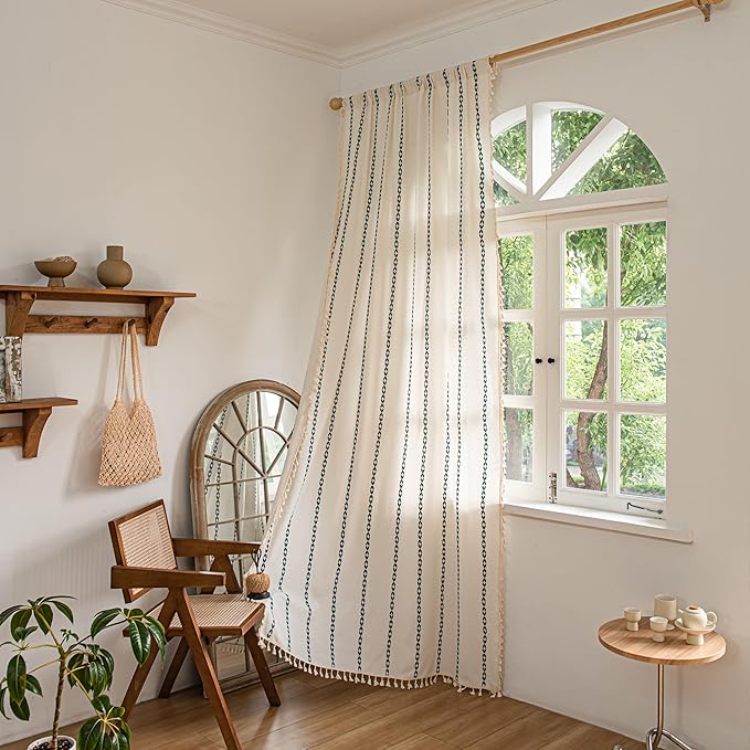- 【Ready Made Curtain】Each package contains 1 panel embroidery bohemian curtain. The boho curtain is made of high-grade cotton polyester blend fabric, each panel size measures width 52" by length 96". Top rod pocket design fits up to 3’’ curtain rod for hanging.