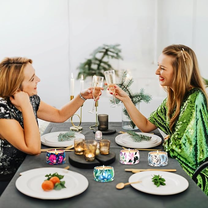 - Clean and Long Burning: Each 2.5oz smokeless scented candle can burn 15-18 hours, and the 13.5oz candle can burn 70-75 hours for any event or holiday party dinner table.