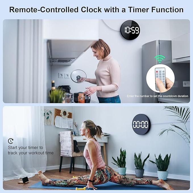 - Large Wall Clocks Convenient countdowns at your fingertips: Set your timer with just an input number, saving you time and effort. Using the number keys on your remote, the big wall clock lets you quickly pick the countdown time you want. No need for complicated steps – enjoy the ease of convenience with a digital wall clock.