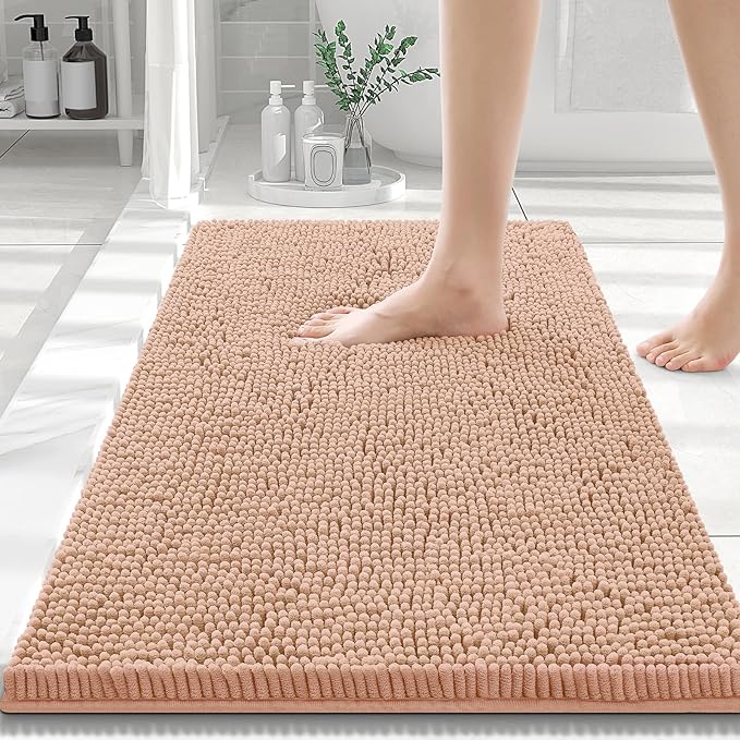 Smiry Luxury Chenille Bathroom Rugs 30x20, Extra Soft and Absorbent Shaggy Bath Mat, Machine Washable, Non-Slip Plush Carpet Runner for Tub, Shower, and Floor, Home Decor Accessories, Peach